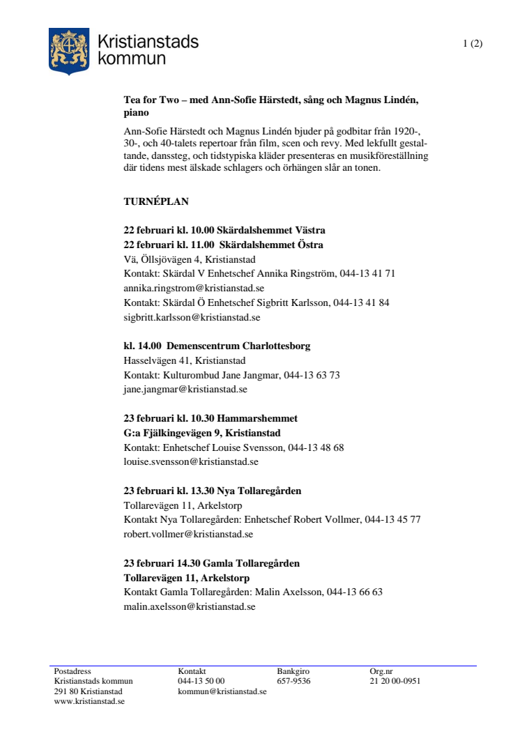 Nu avslutas projektet på bästa sätt: med ”Tea for Two” - en turné där härlig musik blandas med en doft av gala och glamour!