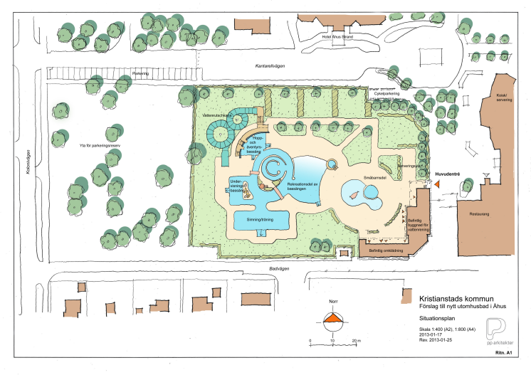 Skiss av det utomhusbad som är planerat att ersätta Kantarellbadet i Åhus. Illustration: PP Arkitekter.