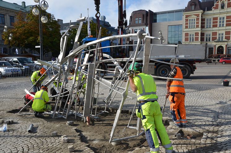 Palle Pernevis skulptur Ikaros flyttades bort från Stora Torg i Kristianstad när rådhuskvarteret började byggas om 2011. Nu har den återvänt i nyrenoverat skick.