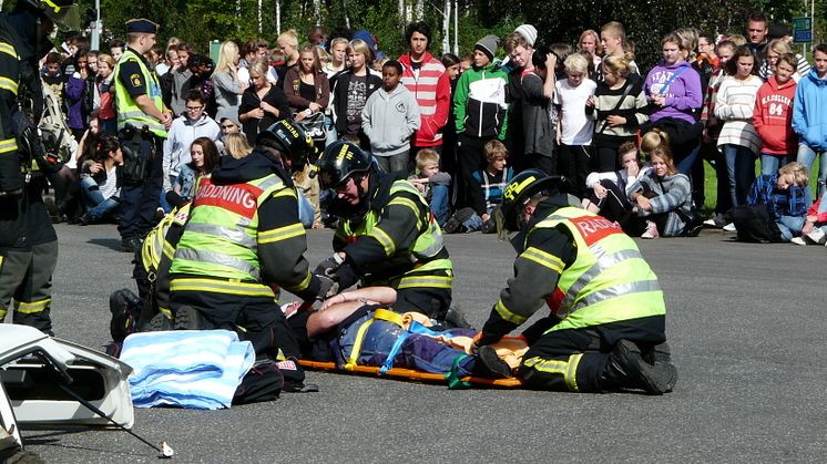 Säkerhetsmässan, som hålls den 11 och 12 september, vänder sig till ca 850 elever i årskurs sju. Förutom simulerade olyckor får ungdomarna också diskutera och reflektera över frågor som rör säkerhet och brottslighet.  Nytt för i år är att eleverna får se och diskutera konsekvenserna av kränkningar på nätet.
