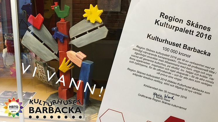 Kulturhuset Barbacka tilldelades igår Region Skånes Kulturpalett med motiveringen: