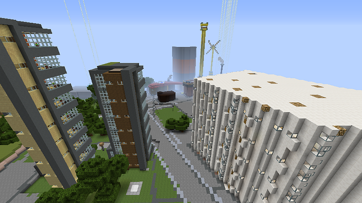 Minecraft-användare från hela världen har fått möjlighet att skapa den nya stadsdelena. På utställningen visas nu bilder på byggnaderna och man kan också se en film från spelet.